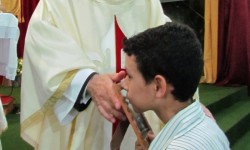 A Solenidade da Anunciação foi celebrada com a Santa Missa pelo Revmo. Pe. José Manuel Andrade, EP. Durante a missa o jovem Fabiano recebeu pela primeira vez a Jesus Eucarístico. Foi uma ocasião de grande alegria para todos!