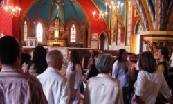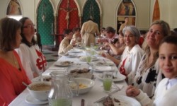 No Centro Mariano, imenso, outra linda igreja gótica nos esperava: “Parece o céu” comentou alguém. Neste céu tivemos a alegria de um almoço em que o convívio era mais apetitoso do que a refeição…