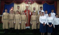 Foram 12 rapazes, a mãe e a irmã de um deles os que tiveram a alegria de receber o Crisma e passam a ser, conforme ensina a Igreja, Soldados de Cristo: lhes é concedido forças para enfrentarem as lutas da vida, abertura de alma para conhecer e amar mais a Deus e ao próximo.