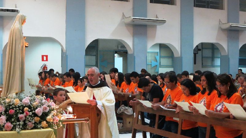 O Pe. Ricardo Basso, EP lê a fórmula de consagração